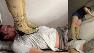 Den nutzlosen Fickversager bestraft die wundervolle Mistress mit einem brutalen Trampling. Dafür trägt sie geile Westernstiefel, mit einem klobigen Absatz. Unter dem Gewicht der kräftigen Mistress stöhnt der menschliche Fußabtreter, doch dafür wird er mit noch mehr brutalen Tritten bestraft. Die Bestrafung und die Erniedrigung sind Teil seiner Sklavenerziehung, denn die heiße Mistress legt Wert auf einen gut erzogenen Sklaven. Der Loser ist seiner sexy Mistress hilflos ausgeliefert. Die Stiefeldomination und die Fußdomination eignen sich wunderbar zum Trampling und Crushing des mickrigen Sklavenkörpers.