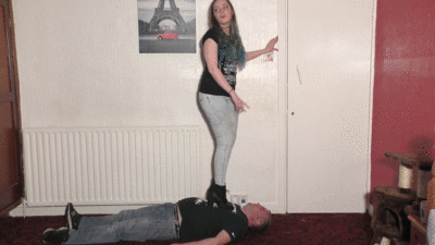 Auf ihrer menschlichen Tanzmatte will das freche Girl tanzen. Mit ihren Stiefelletten sorgt sie für ein brutales Trampling und Headstanding. Der schwache Loser stöhnt bei jedem Tritt, doch seine Bestrafung und seine Domination sind noch nicht beendet. Das freche Girl erniedrigt ihn und lacht ihn aus. Die junge, sexy Herrin will ihren Spaß, während der Sklave große Schmerzen ertragen muss. Wehrlos liegt er auf dem Boden, denn er ist ihr Eigentum. Er kennt seinen Platz, der unter den wundervollen Füßen ist.